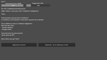 Chaque décision augmente ton stress… ou détruit ton image.